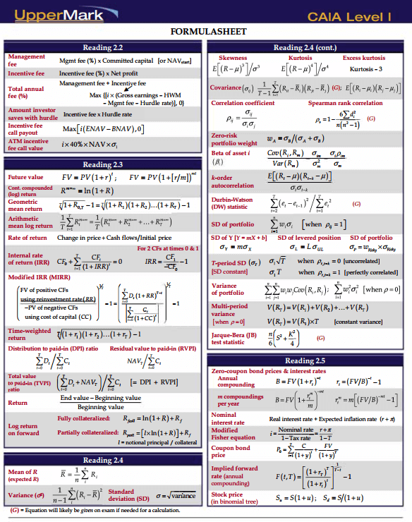 CAIA 2026 UpperMark Handbook Level 1 with Formula Sheet