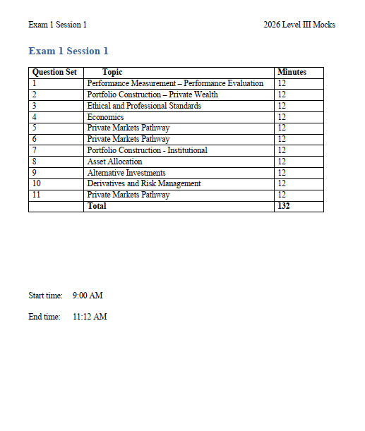 • These mocks are designed for CFA Level 3 Private Markets Pathway in difficulty.